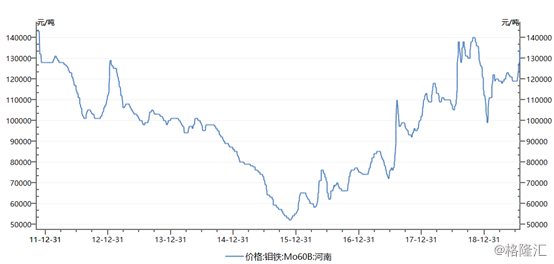 不锈钢是钼下游消费主力,2019年上半年我国不锈钢产量1422万吨,同比增长5.5%,且随着7-8月份计划产量持续回升至历史峰值,不锈钢对镍和钼的需求维持在高位。夏季处于钢市传统淡季,但7月以来,钢厂招标采购积极性不减,需求不断释放,因此去库较为困难,在上游价格持续走高的支撑下,钼铁库存持续消耗,预计下半年供给仍将维持偏紧格局。