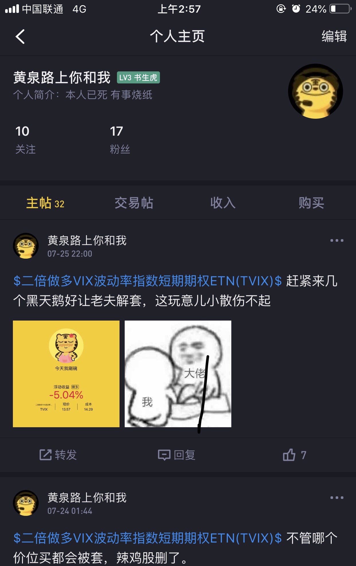 我曾预测美股会迎来新一轮的下跌趋势,可惜当时抄底抄✧(๑•̀ㅁ•́ฅ早了抄在中部。然后卖的时候预测会上16,但是由于自己是小散只能定一个不亏本的价位走人。切记这股赌的是黑天鹅,不是简简单单做空那么简单。反正捞了一笔钱,祝留下来的各位发财💰。[开心]$二倍做多VIX波动率指数短期期权ETN(TVIX)$