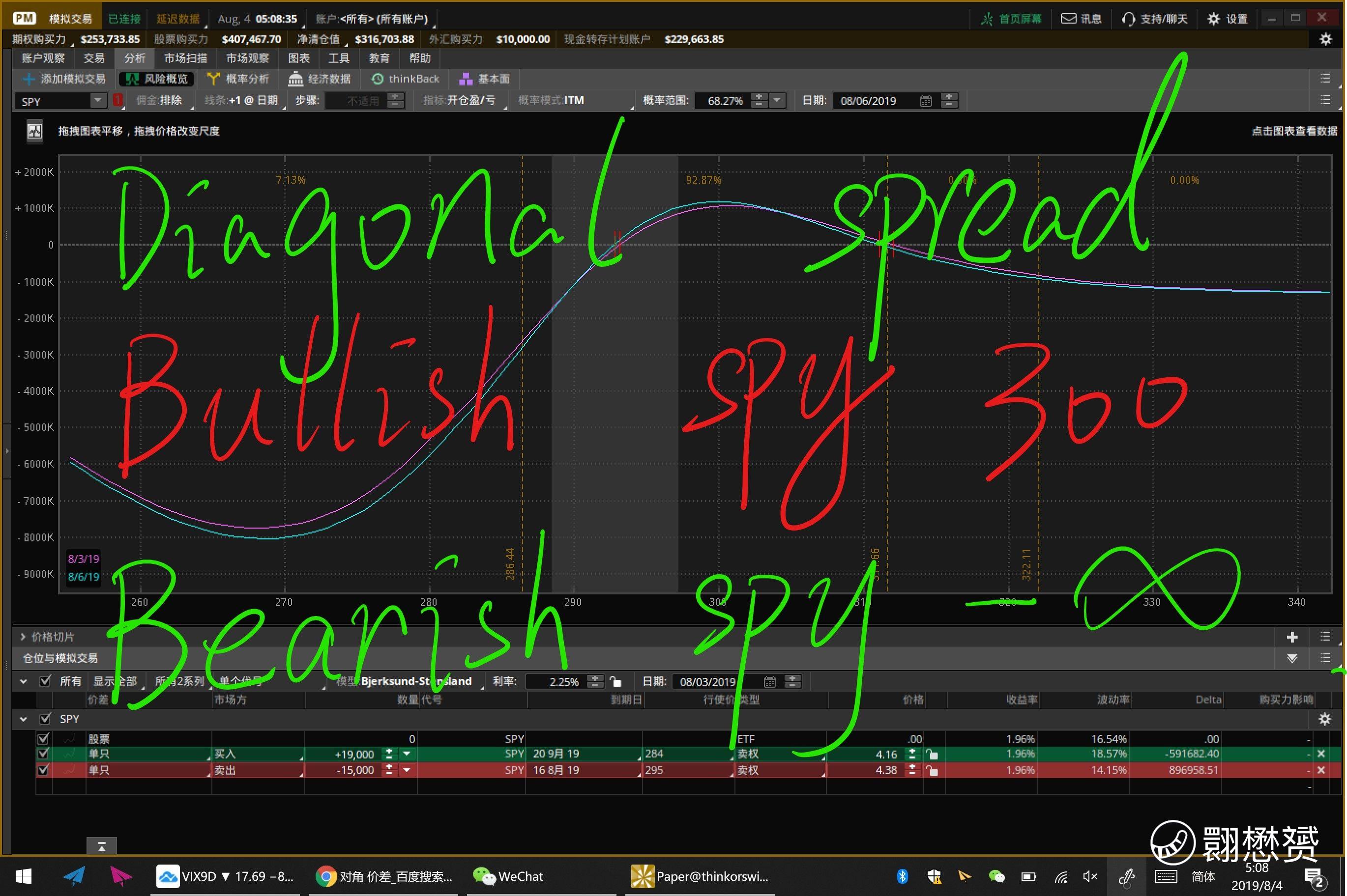 图一绿色横线的是一个PUT SPREAD,分析对应图二!红色横线的是DIAGONAL SPREAD,分析对应的是图三!