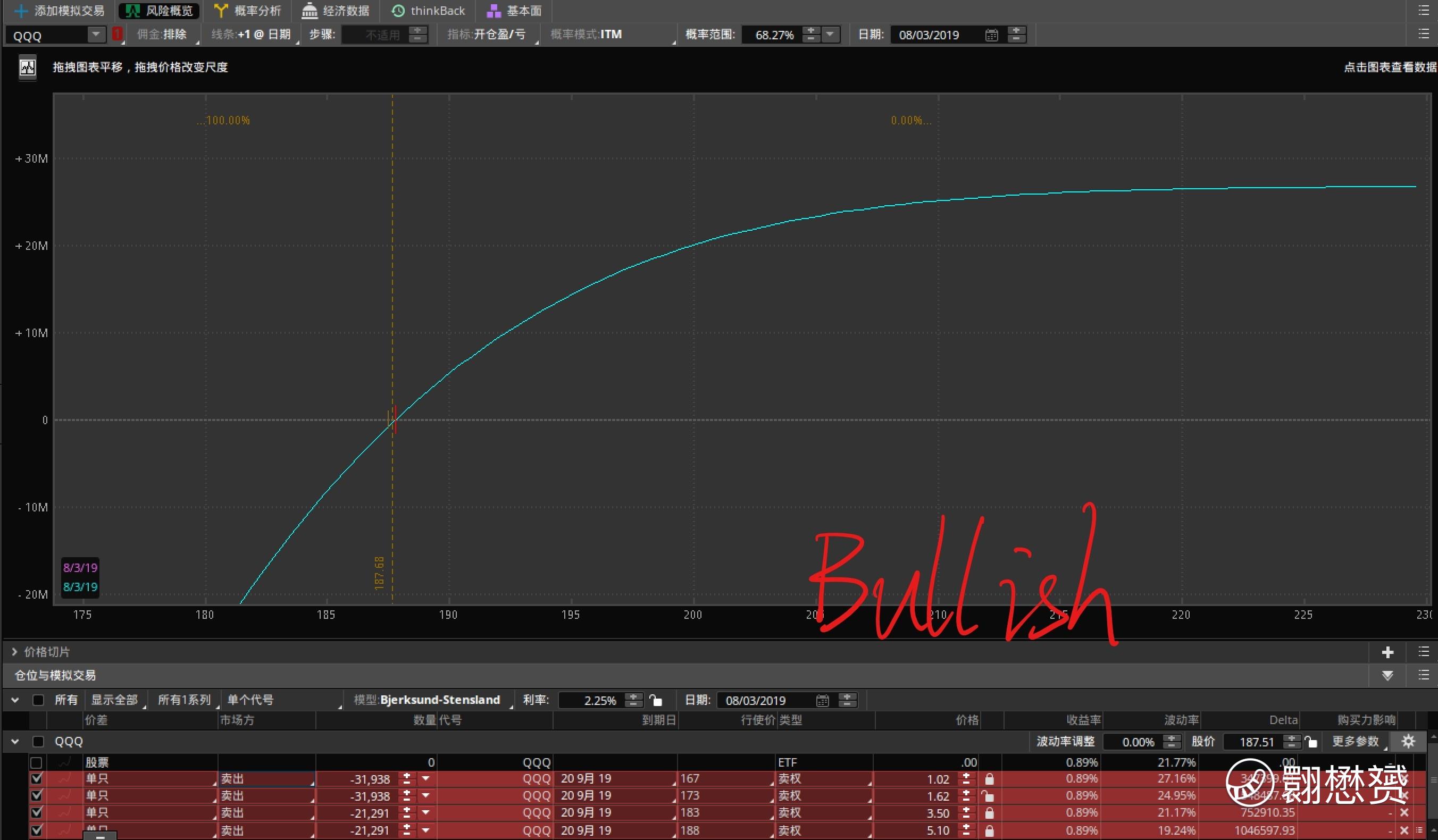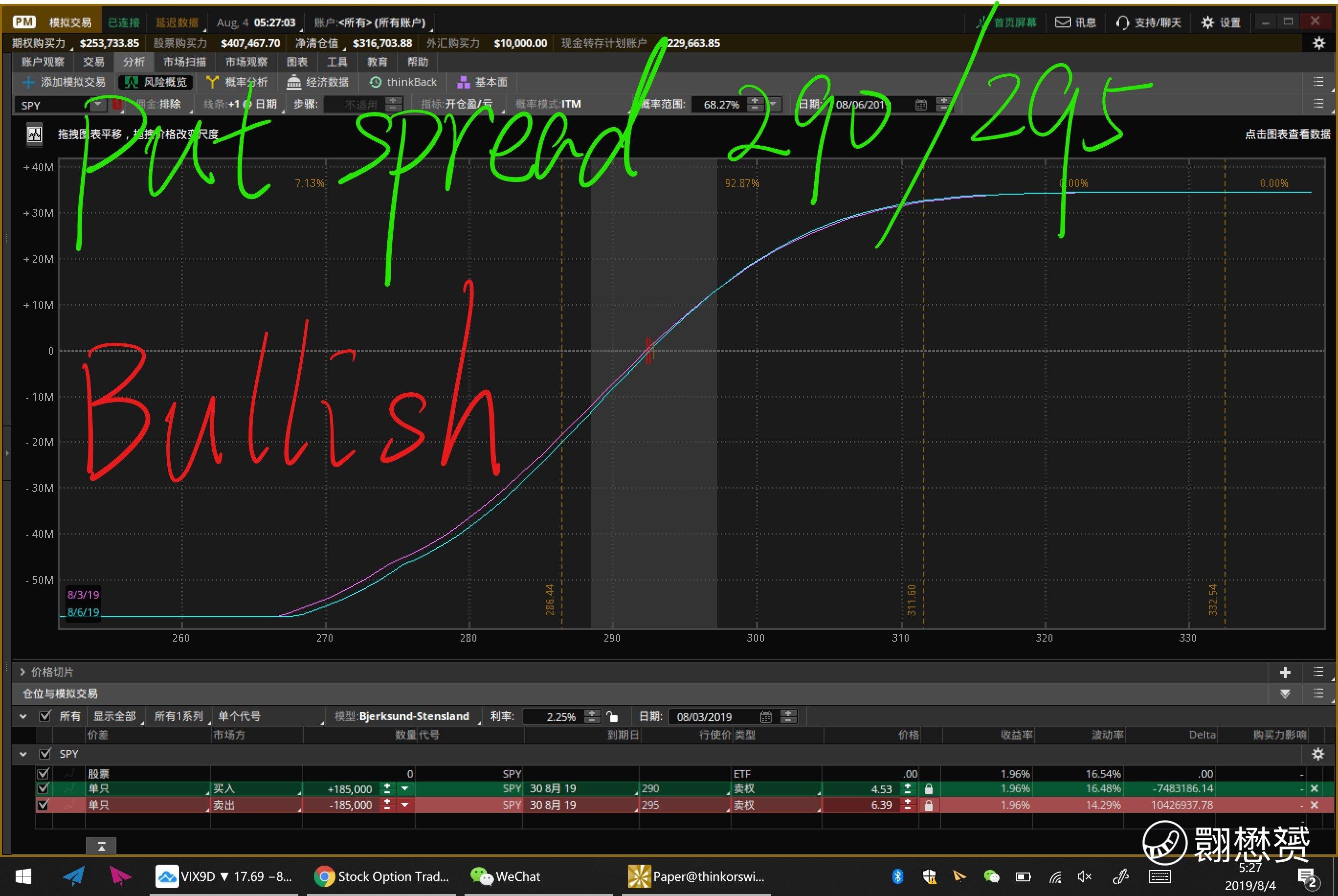 同样,图三也是看涨的策略,只不过SPY涨到300附近就已经达到最大利润了!然后超过300又开始亏损!