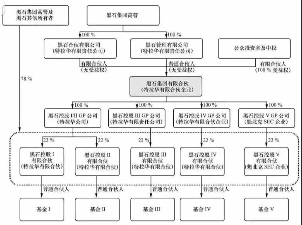 买过私募基金的朋友们应该知道,在有限合伙企业中,GP拥有几乎一切经营管理权,LP则只有知情权和收益权,在这里上市企业的架构也是这样,投资人作为LP处在绝对劣势,就像一个极限版的AB股结构,控制方掌握一切,投资人则既缺乏法律上的自我保护权利,没有公司治理的投票权,也几乎无法对GP主张法律责任。大家可以回忆一下去年京东出事时,两波主要的跌势其一是由案件曝光引起,其二则是由京东的董事会和公司章程设计曝光引起(没有刘强东出席则无法召开董事会)。在黑石的例子里,对投资人而言则不是无法召开董事会,而是根本没有董事会。