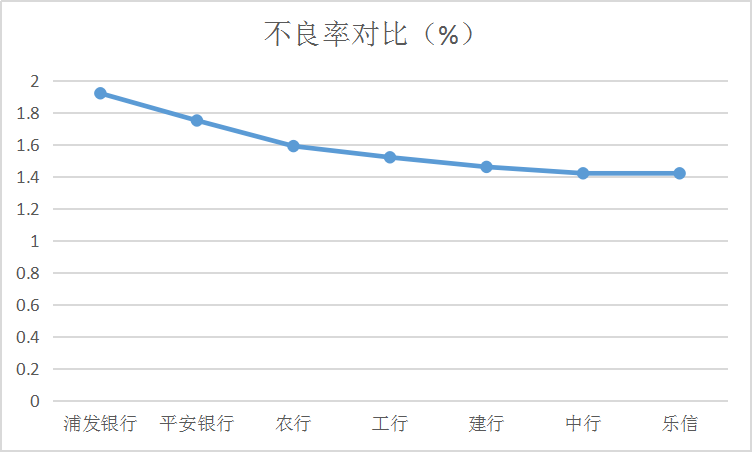 年报数据显示,截至2018年底,工商银行不良贷款率为1.52%,建设银行不良率为1.46%,农业银行不良贷款率为1.59%,中国银行不良率为1.42%;股份制大型银行中,浦发银行不良率则为1.92%,平安银行不良率为1.75%。