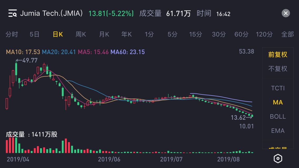 还有十多天Jumia就发财报了,这是该公司上市以来的第二份财报,这次财报数据是会超预期呢还是会不及预期呢?Jumia被做空以来股价连续跌了这么久,目前丝毫没有企稳止跌的迹象。这次财报会如何影响接下来的股价走势呢?你会以做多或者做空的方式赌一下这次财报吗?欢迎虎友们进来讨论!
