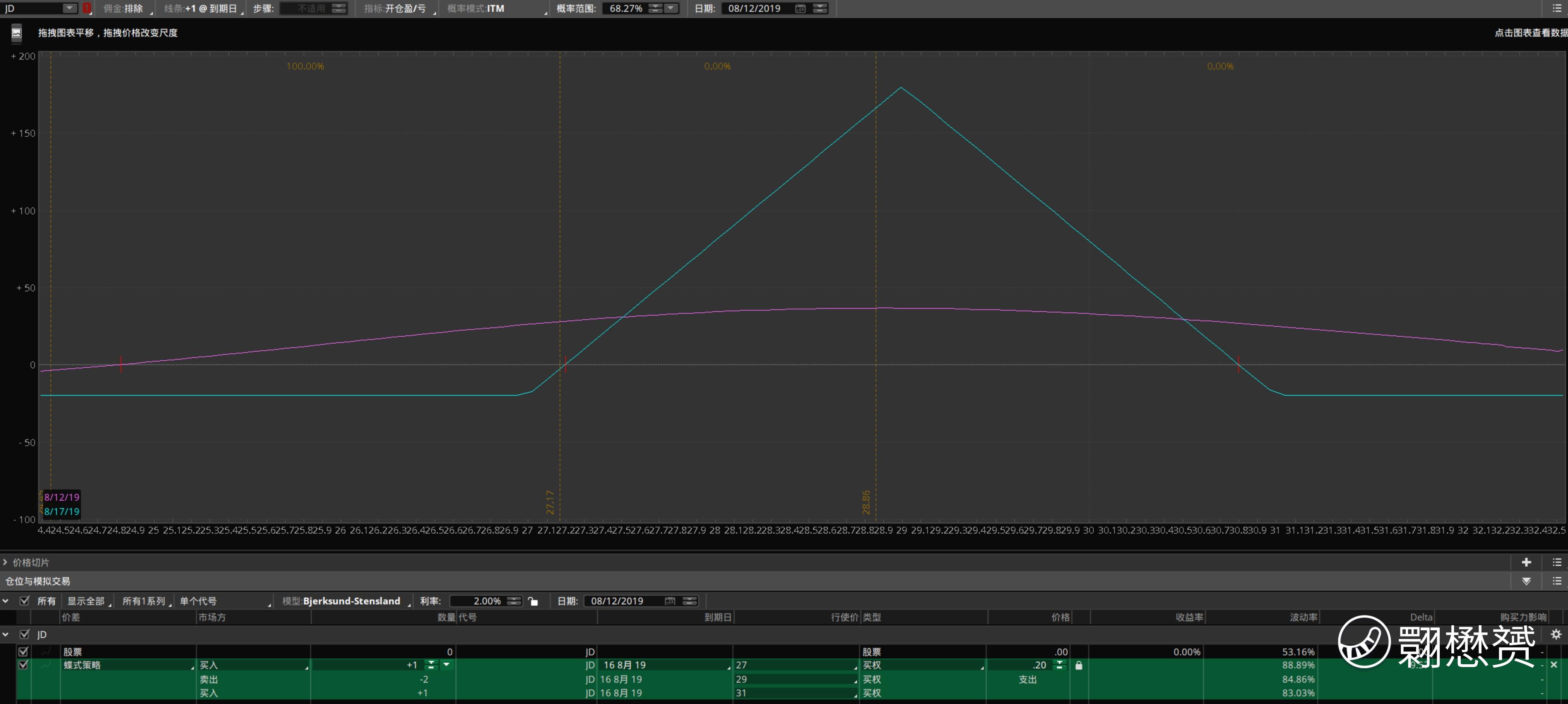 蝶式策略可能更稳些,风险回报比高。每一份赚应该能赚一百多,亏就亏几十!想赌涨的话,往30方向在偏一点!