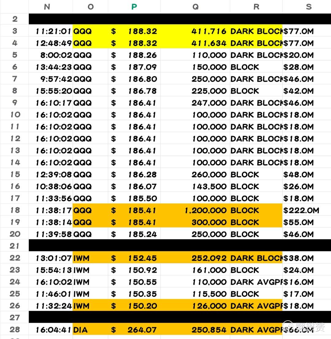 $纳指ETF(QQQ)$ 有两笔交易引起了我的注意!成交价188.32,关键是QQQ一整天的价格都没有超过188。那么以188.32的价格成交QQQ应该是主动买盘???