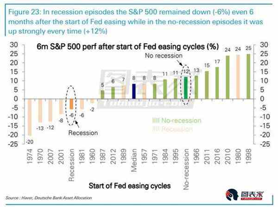 在没有衰退的情况下,经济增长会出现温和的下滑。降息后的两到三个月,经济增长迅速反弹,六个月后,标普500指数平均上涨12%。