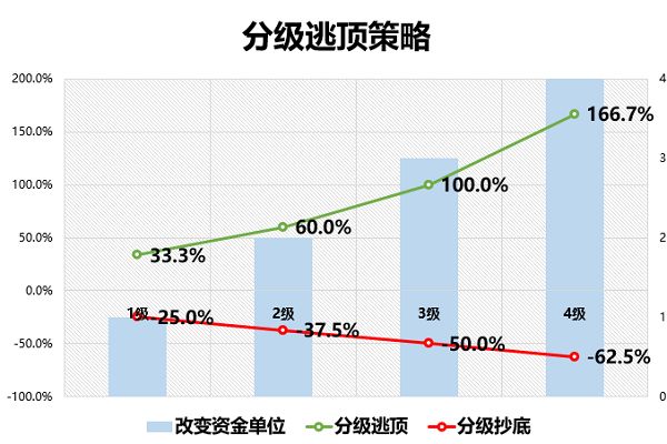 所谓分级逃顶策略其实就是分级抄底策略的一个反向操作——涨得越猛,卖的越多。