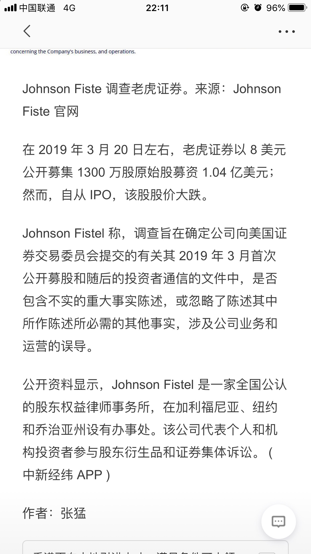 {"i18n":{"language":"zh_CN"},"detailType":1,"isChannel":false,"data":{"magic":2,"id":994276128,"tweetId":"994276128","gmtCreate":1566828737764,"gmtModify":1704715104813,"author":{"id":3496872214940139,"idStr":"3496872214940139","authorId":3496872214940139,"authorIdStr":"3496872214940139","name":"oneplus","avatar":"https://static.laohu8.com/default-avatar.jpg","vip":1,"userType":1,"introduction":"","boolIsFan":false,"boolIsHead":false,"crmLevel":2,"crmLevelSwitch":0,"individualDisplayBadges":[],"fanSize":15,"starInvestorFlag":false},"themes":[],"images":[{"img":"https://static.tigerbbs.com/95e98959a3650a29df2864155c36723c","width":"1242","height":"2208"}],"coverImages":[{"img":"https://static.tigerbbs.com/95e98959a3650a29df2864155c36723c","width":"1242","height":"2208"}],"extraTitle":"","html":"<html><head></head><body> <a href=\"https://laohu8.com/S/TIGR\">$老虎证券(TIGR)$</a>如图<img src=\"https://static.tigerbbs.com/95e98959a3650a29df2864155c36723c\" tg-width=\"1242\" tg-height=\"2208\"></body></html>","htmlText":"<html><head></head><body> <a href=\"https://laohu8.com/S/TIGR\">$老虎证券(TIGR)$</a>如图<img src=\"https://static.tigerbbs.com/95e98959a3650a29df2864155c36723c\" tg-width=\"1242\" tg-height=\"2208\"></body></html>","text":"$老虎证券(TIGR)$如图","highlighted":1,"essential":1,"paper":1,"likeSize":4,"commentSize":8,"repostSize":0,"favoriteSize":0,"link":"https://laohu8.com/post/994276128","repostId":0,"isVote":1,"tweetType":1,"viewCount":3355,"commentLimit":10,"likeStatus":false,"favoriteStatus":false,"reportStatus":false,"symbols":["TIGR"],"verified":2,"subType":0,"readableState":1,"langContent":"CN","currentLanguage":"CN","warmUpFlag":false,"orderFlag":false,"shareable":true,"causeOfNotShareable":"","featuresForAnalytics":[],"commentAndTweetFlag":false,"andRepostAutoSelectedFlag":false,"upFlag":false,"length":20,"xxTargetLangEnum":"ZH_CN"},"commentList":[{"id":1799426,"commentId":"1799426","gmtCreate":1566829498059,"gmtModify":1566833797312,"authorId":16180209980775,"author":{"id":16180209980775,"idStr":"16180209980775","authorId":16180209980775,"name":"九格","avatar":"https://static.tigerbbs.com/9b7351b7dca167cbf31dfae7714bb158","vip":2,"currentWearingBadge":{"badgeId":"35ec162348d5460f88c959321e554969-3","templateUuid":"35ec162348d5460f88c959321e554969","name":"传说交易员","description":"证券或期货账户累计交易次数达到300次","bigImgUrl":"https://static.tigerbbs.com/656db16598a0b8f21429e10d6c1cb033","smallImgUrl":"https://static.tigerbbs.com/03f10910d4dd9234f9b5702a3342193a","grayImgUrl":"https://static.tigerbbs.com/0c767e35268feb729d50d3fa9a386c5a","redirectLinkEnabled":0,"hasAllocated":1,"isWearing":1,"stampPosition":0,"hasStamp":0,"allocationCount":1,"allocatedDate":"2022.04.21","exceedPercentage":"93.14%","individualDisplayEnabled":0,"individualDisplaySort":0,"categoryType":1100},"hat":"https://static.tigerbbs.com/306aa047bc14b6942cda1aed925cf8c3","crmLevel":5,"crmLevelSwitch":0,"individualDisplayBadges":[]},"repliedAuthorId":0,"objectId":994276128,"objectIdStr":"994276128","type":1,"supId":0,"supIdStr":"0","prevId":0,"prevIdStr":"0","content":"我还以为怎么了,多大点事… \n<br>美国这种专门做投资者诉讼的律所一大堆,律所调查而已。 \n<br>当初中概私有化的时候,也是一堆出来说要告的,然后就没有然后了。 \n<br>果然是A股风格,一点风吹草动就暴涨暴跌,所以说散户多的市场很烦人。","text":"我还以为怎么了,多大点事… \n<br>美国这种专门做投资者诉讼的律所一大堆,律所调查而已。 \n<br>当初中概私有化的时候,也是一堆出来说要告的,然后就没有然后了。 \n<br>果然是A股风格,一点风吹草动就暴涨暴跌,所以说散户多的市场很烦人。","html":"我还以为怎么了,多大点事… \n<br>美国这种专门做投资者诉讼的律所一大堆,律所调查而已。 \n<br>当初中概私有化的时候,也是一堆出来说要告的,然后就没有然后了。 \n<br>果然是A股风格,一点风吹草动就暴涨暴跌,所以说散户多的市场很烦人。","likeSize":0,"commentSize":0,"subComments":[],"verified":10,"allocateAmount":0,"commentType":"valid","coins":0,"score":0,"disclaimerType":0},{"id":1799409,"commentId":"1799409","gmtCreate":1566829330830,"gmtModify":1566829330830,"authorId":3490310974708769,"author":{"id":3490310974708769,"idStr":"3490310974708769","authorId":3490310974708769,"name":"时间就是复利的朋友","avatar":"https://static.tigerbbs.com/3080c85d3d9b118d457d38555d2d41d9","vip":1,"crmLevel":1,"crmLevelSwitch":0,"individualDisplayBadges":[]},"repliedAuthorId":0,"objectId":994276128,"objectIdStr":"994276128","type":1,"supId":0,"supIdStr":"0","prevId":0,"prevIdStr":"0","content":"拼夕夕也被这种律所搞了,美国啥东东都能维权,保护我们小散","text":"拼夕夕也被这种律所搞了,美国啥东东都能维权,保护我们小散","html":"拼夕夕也被这种律所搞了,美国啥东东都能维权,保护我们小散","likeSize":2,"commentSize":0,"subComments":[],"verified":10,"allocateAmount":0,"commentType":"valid","coins":0,"score":0,"disclaimerType":0},{"id":1799447,"commentId":"1799447","gmtCreate":1566829724526,"gmtModify":1566829724526,"authorId":3527667564193070,"author":{"id":3527667564193070,"idStr":"3527667564193070","authorId":3527667564193070,"name":"胜者为王的Great","avatar":"https://static.tigerbbs.com/bbfdd8c2292f4119208213eb446700eb","vip":1,"crmLevel":1,"crmLevelSwitch":0,"individualDisplayBadges":[]},"repliedAuthorId":0,"objectId":994276128,"objectIdStr":"994276128","type":1,"supId":0,"supIdStr":"0","prevId":0,"prevIdStr":"0","content":"天真,这是律所吃饭的业务,比如血球那个郝俊博","text":"天真,这是律所吃饭的业务,比如血球那个郝俊博","html":"天真,这是律所吃饭的业务,比如血球那个郝俊博","likeSize":0,"commentSize":0,"subComments":[],"verified":10,"allocateAmount":0,"commen