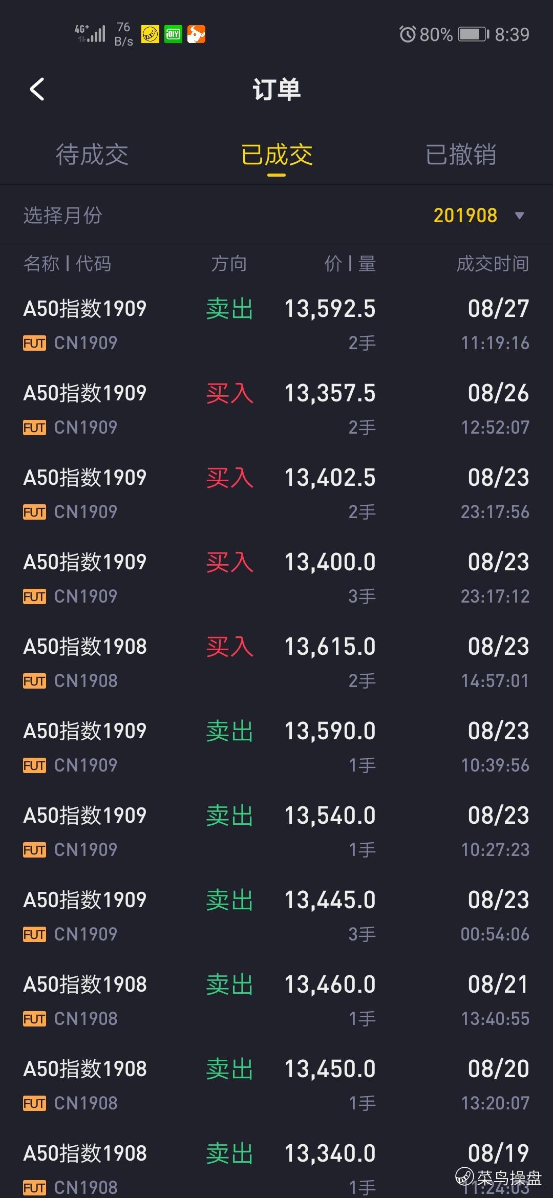 消息推送显示中国经济数据好于预期,A50大涨到了13620,空单在(盈透账户不会自动取消)在13520自动成交,多单由于被系统自动撤销了,未平仓,反而多得了160美元,睁眼后平仓多单,加仓盈透1手空单,共4手,14时许在13500平仓2手空单,13475平仓2手空单,A50最多降至13435左右,本轮出去手续费50多美元,盈利260美元,差一点成了250,要不是睡觉可能就不盈利了。还是在冒险。