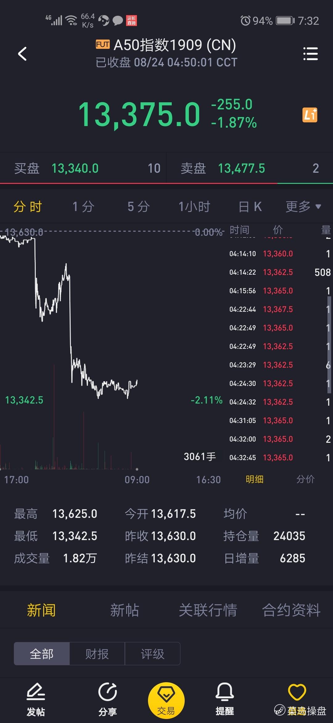另外吐槽下老虎,5月7日、8月1日、8月23日特朗普3次发推特,A50大跌,老虎的软件出现重大Bug,持仓数据无法更新,造成损失,希望改进。$京东(JD)$ $A50指数1909(CN1909)$ $特斯拉(TSLA)$ $苹果(AAPL)$ $万达体育(WSG)$ $阿里巴巴(BABA)$ $老虎证券(TIGR)$ $Beyond Meat, Inc.(BYND)$ $微软(MSFT)$ $A50指数主连(CNmain)$ $A50指数1908(CN1908)$
