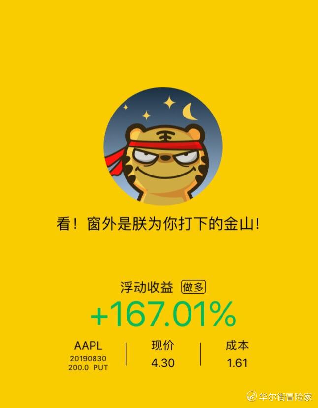 前天买的苹果put,结合金毛的新推特以及上午国内的新闻,还有恐慌带来作妖机会。