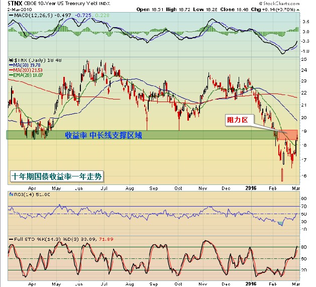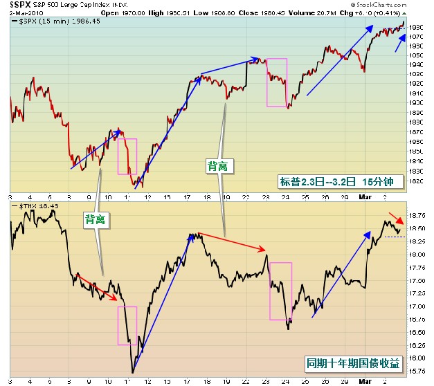 下图将2月的整个行情中,标普500指数和国债收益率的走势关系展示出来。