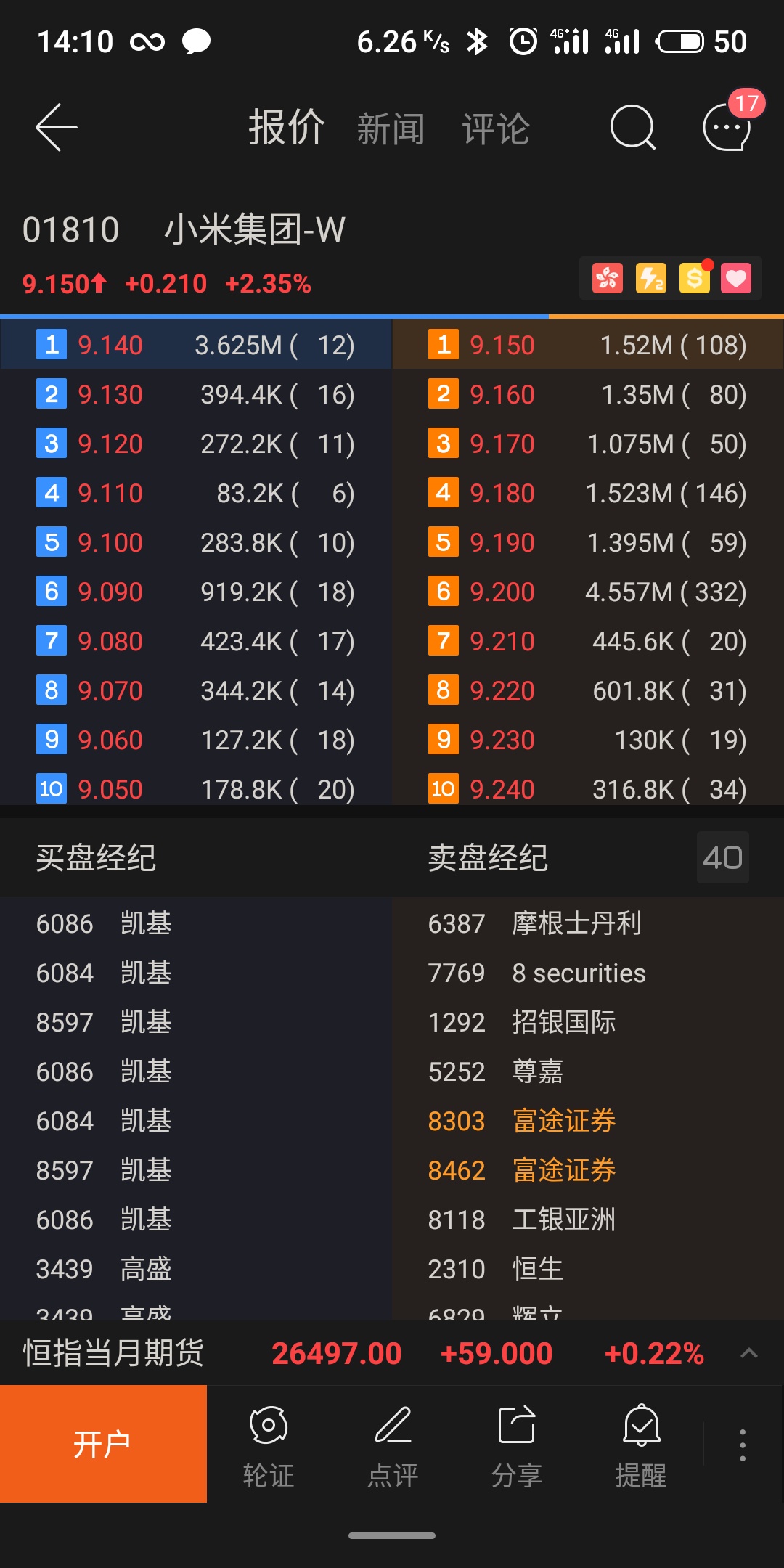 $小米集团-W(01810)$ 凯基诱多骗子又来了,拿个3M天天挂了撤,撤了又挂,就是不成交,一到买盘一位就立马撤掉。