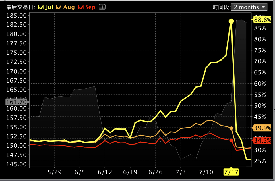 然后我们回到赌财报上,为什么说容易双杀呢,因为它的IV变化是这样的: