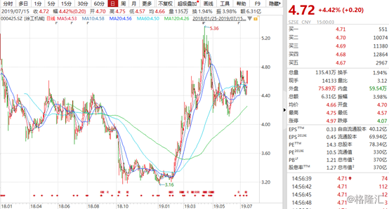 受此消息的影响,今日公司股价高开3.96%,早盘一度下滑,下午重新拉回,截止收盘时间,公司股价涨4.42%,收4.72元/股。