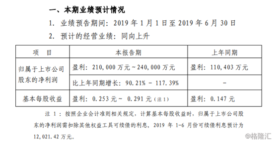 单季度来看,今年一季度公司归母净利润为10.53亿元,去年二季度公司归母净利润为5.38亿元;从预告的业绩计算得出,今年第二季度公司实现盈利10.47亿元—13.47亿元,较一季度相比,环比增长-0.57%-27.92%;较去年二季度相比,公司归母净利润同比增长94.6%—150.37%。