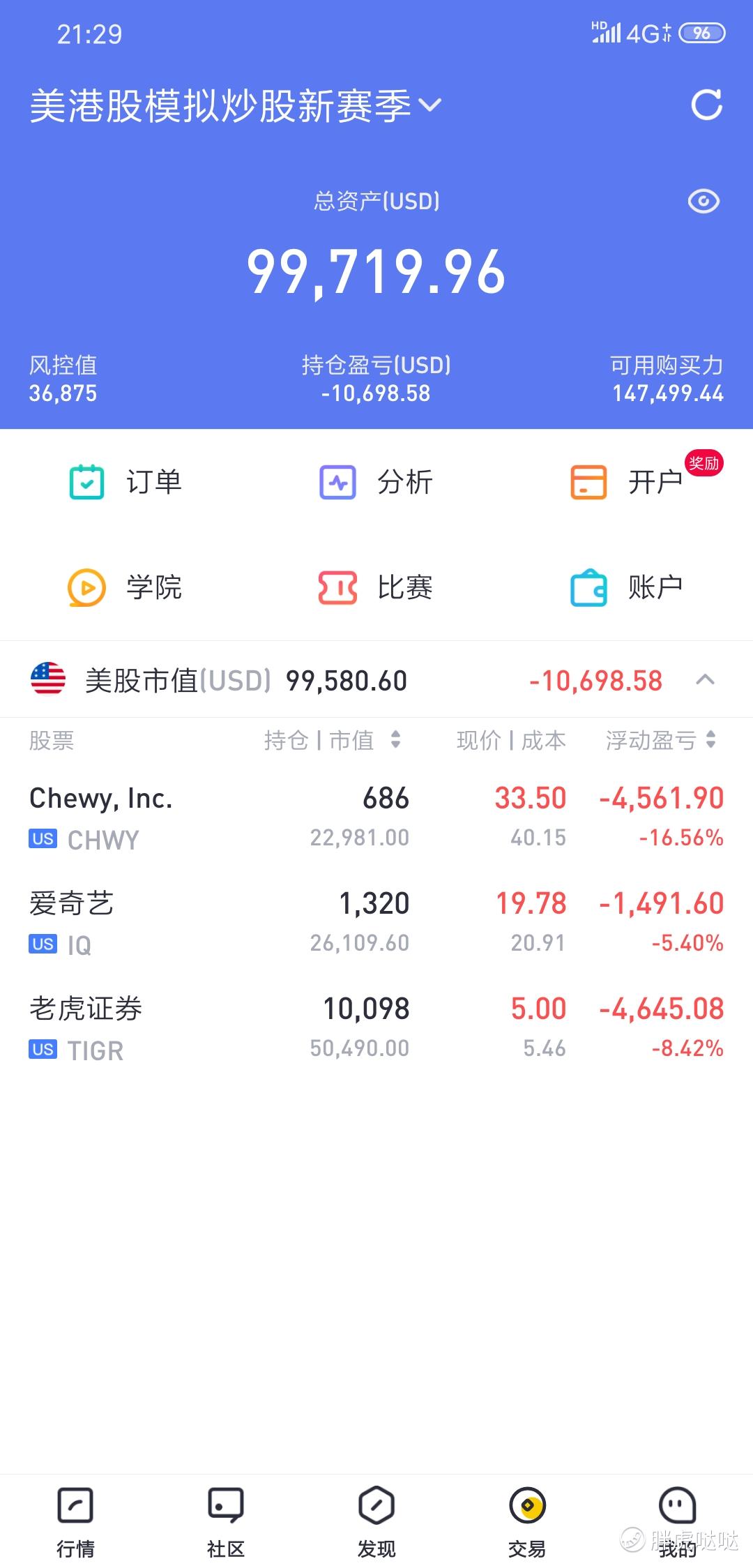 4,大赛限制了交易股票交易种类,帮助交易者规避实盘风险,形成良好的交易习惯。实盘中很多低价股票,俗称毛票,这种股票在港美股市很常见。这种股票在美股金额小,在A股抄底找不到地方的人,看到这种股票很想买,但市盘交易中这种股票,波动大,交易量小,交易成本高,极易给投资者带来一万点暴击伤害[喷血]。可能正是因为如此,我才没有排名垫底[贱笑]