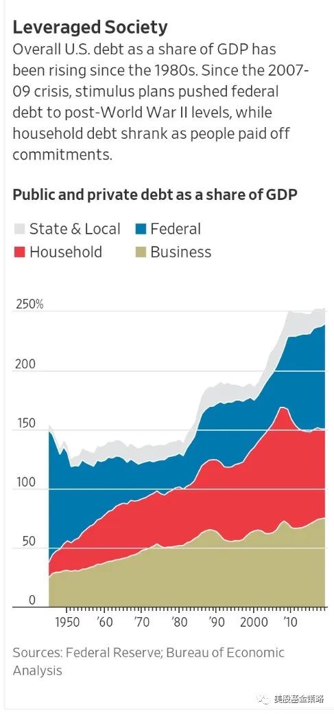 近年来,美国社会其实更关心美国家庭债务,毕竟次贷危机发生后,通过一系列经济宏观政策,美国经济是起来了,股市也进入大牛市了,但是很多家庭在那个时候失去的房子和经济地位的下降是实实在在的,甚至长期难以翻身。
