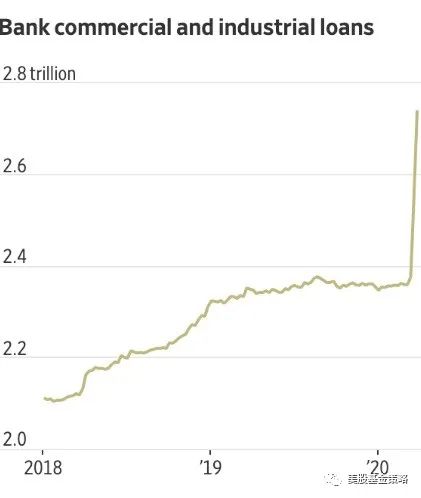 而为了应对疫情下的现金流危机,很多公司不得不继续向银行借贷以便度过难关,这也使得美国工商业银行的贷款近期也激增。