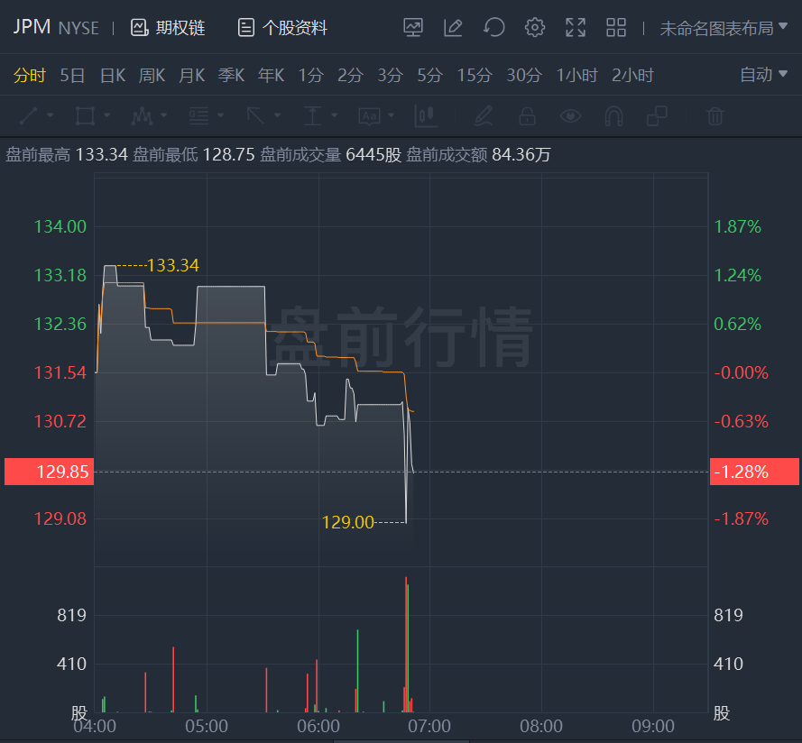 财报发布后,摩根大通盘前一度下跌近2%