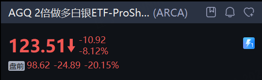 现货黄金、白银日内大跌,概念股走低。2倍做多白银ETF-ProShares 暴跌20%,赫克拉矿业 、美洲白银公司 、金田跌超10%,哈莫尼黄金跌超9%,泛美白银、纽曼矿业、科尔黛伦矿业跌超8%。
