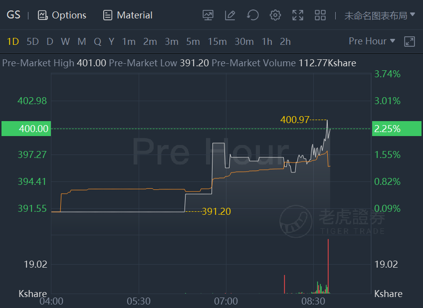 Goldman Sachs shares rose more than 2% after quarterly results beat expectations.