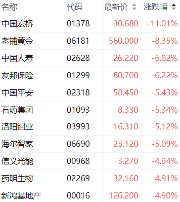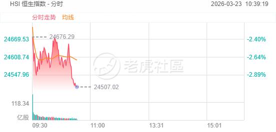 3月23日,恒生指数日内跌幅扩大至3%,成分股中,中国宏桥跌超11%,老铺黄金跌超8%,中国人寿跌近7%。