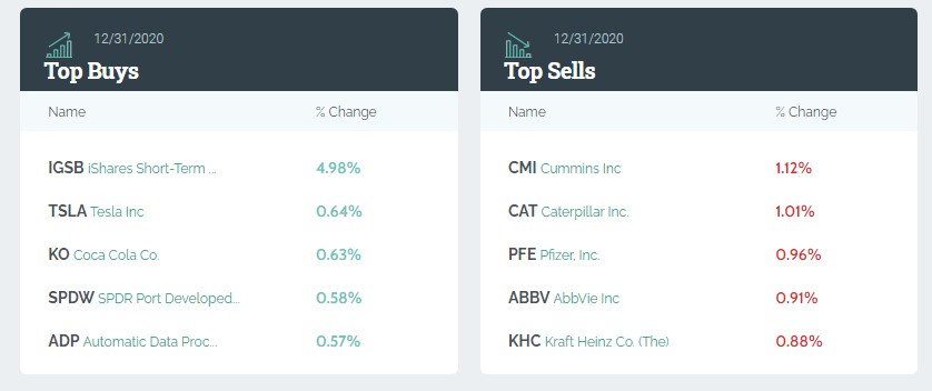 从持仓比例变化来看,前五大买入标的分别是:iShares短期公司债券ETF(IGSB.US)、特斯拉(TSLA.US)、可口可乐(KO.US),SPDR Portfolio Developed World ex-US ETF(SPDW.US)、自动数据处理公司(ADP.US)。