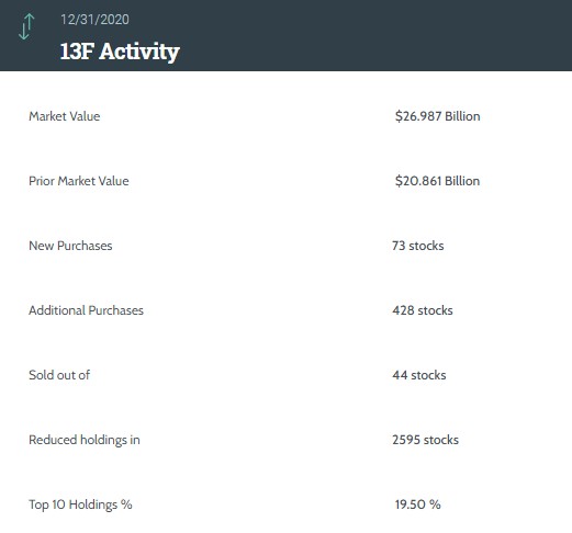 根据美国证监会(SEC)披露,美国国际集团(AIG.US)递交了截止至2020年12月31日的Q4持仓报告(13F)。