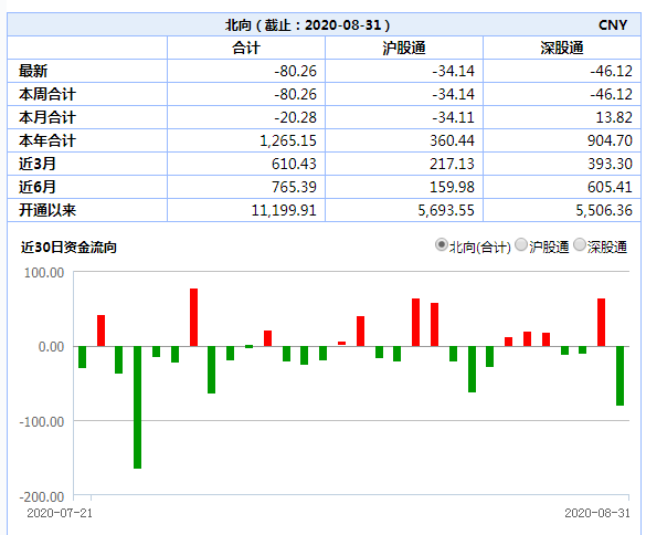 8月13日,MSCI在官网宣布,卓胜微、京沪高铁、邮储银行等3只A股股票被MSCI中国指数纳入,港股瑞安房地产被MSCI中国指数剔除,调整于8月31日收盘生效。按理,今日外资应该是不会大幅流出的。事实上,今日早盘也的确维持着以往的状态,北上资金稳稳流入近36亿元,但午后突然反手做空,北上资金持续流出,截至收盘净卖出80亿元,市场也跟着这个节奏在走。
