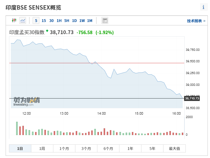据彭博社和南华早报等海外媒体报道,印度方面称,中印再起冲突。这一消息发布之后,印度股指和本币也快速出现了跳水的行情。印度股市于当地时间午后回吐所有涨幅,基准的标准普尔BSE Sensex在孟买下午12:03一度杀跌0.7%,而卢比在此消息发布后下跌0.4%。在A股收盘之后,孟买30指数跌幅进一步扩大近2%。