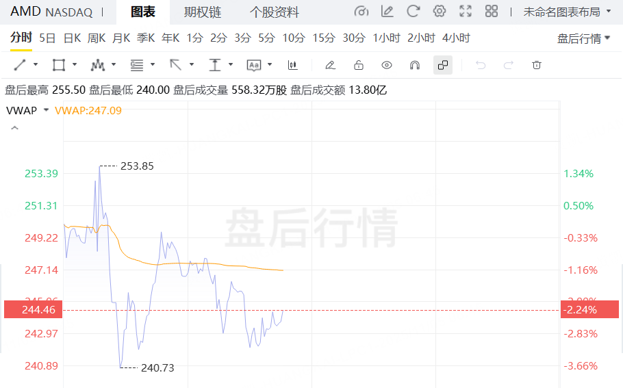 财报公布后,AMD股价在盘后交易中一度下跌超3%,跌幅随后有所收窄。