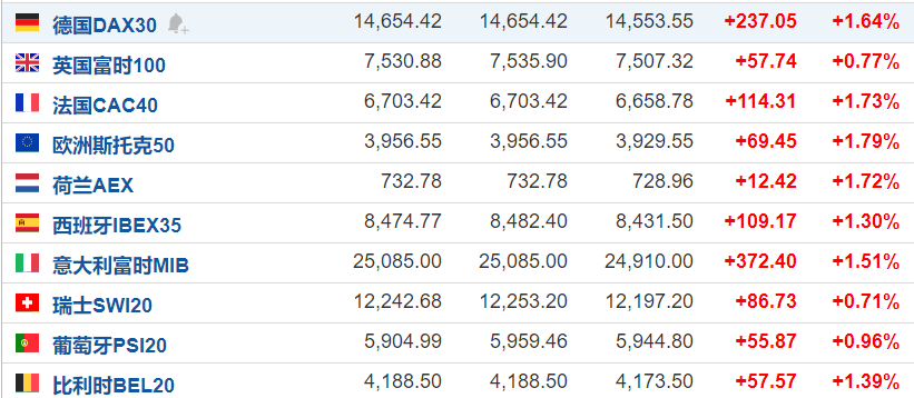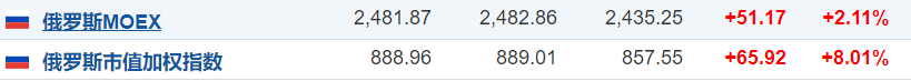 3月29日,俄罗斯MOEX指数涨超2%,俄罗斯RTS指数涨8%。俄罗斯表示,已支付2035年到期欧洲债券的1.02亿美元利息。欧股方面:欧洲主要指数集体上涨,德国DAX30指数涨1.64%,英国富时100指数涨0.77%,法国CAC40指数涨1.73%,欧洲斯托克50指数涨1.79%。