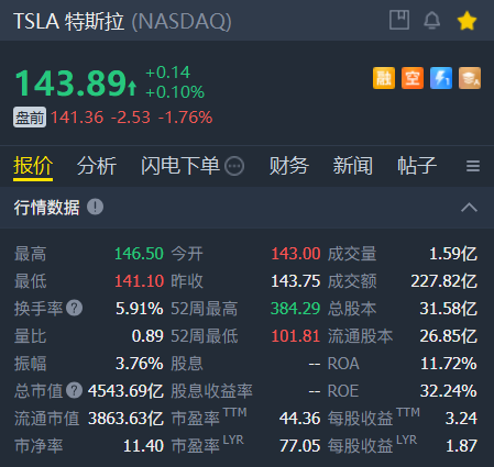 周三,特斯拉盘前跌约2%,特斯拉将于盘后公布财报,有分析师预计净利润将创近3年新低。
