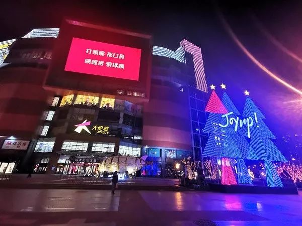 2020年春节刚过,广场内外空空荡荡。五光十色的品牌广告不见了。大悦城楼体内外的数字大屏上,循环播放着“防疫”相关的视频和大幅标语。