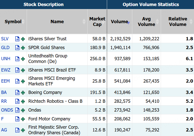 期权市场总成交量5146.97万张合约,低于90日均量;联合健康当日成交93.94万张,多张Put单翻倍大涨,最高飙涨9950%;Richtech Robotics当日成交28.26万张,看涨期权占比攀升至近80%>>