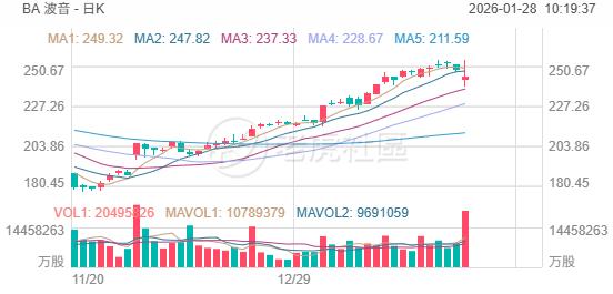 波音股价跌超1%,消息面上,随着飞机交付量升至2018年以来最高水平,波音公司连续第二个季度实现正自由现金流,营收同比大幅增长,调整后每股收益创十多年来单季新高,商用飞机等核心部门亏损收窄,显示其正逐步走出多年运营与质量危机的阴影。
