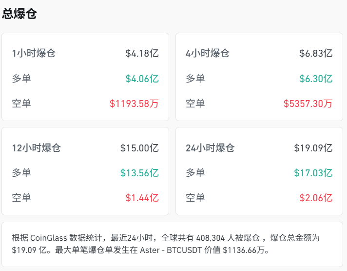 据Coinglass数据,过去24小时内,各类代币的多头头寸清算规模达17.03亿美元,全球有40万人爆仓。交易平台SynFutures首席运营官Wenny Cai指出,清算规模巨大,市场情绪已转向风险规避,价格走势目前更多由资产负债表机制驱动,而非叙事逻辑。