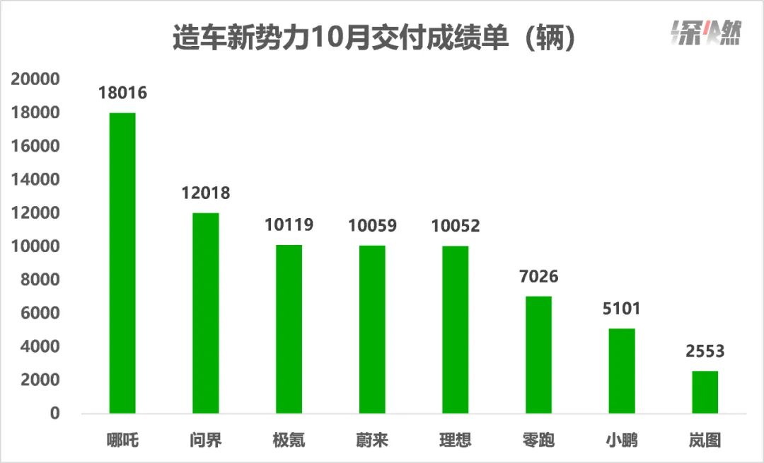 哪吒是个很神奇的存在。10月它又拿了新势力的销冠,交付了18016辆新车,虽然只比9月多了11辆,但也可以对外说创了历史新高。