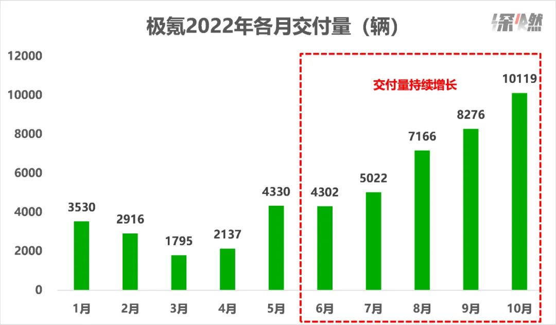 在二线造车新势力中,极氪算是上个月的亮点,交付10119辆,超过了蔚来、理想。