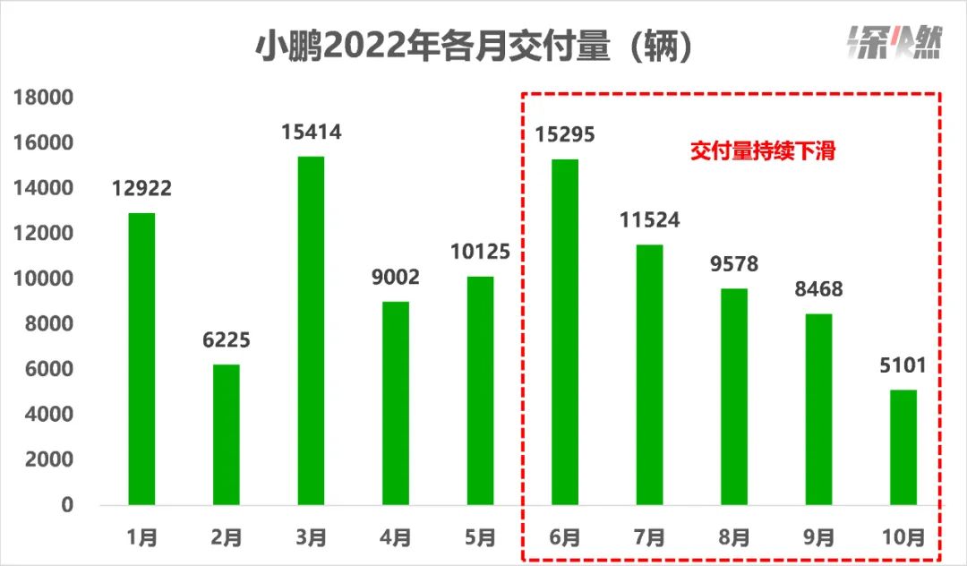 小鹏10月的交付成绩,可以用“暴雷”来形容,只有5101辆。而蔚来、理想都超过1万辆。