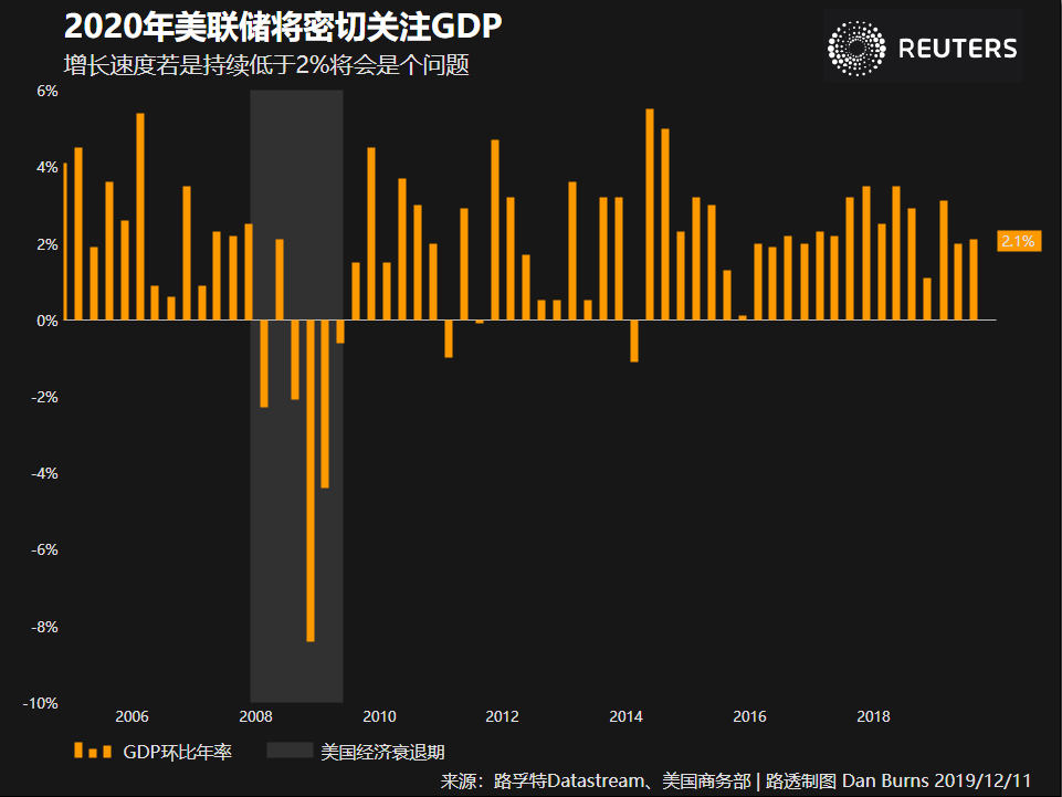 美国去年经济增长了2.9%。但由于特朗普政府减税效应消退和全球增长放缓,预计今年美国增长率将为2.5%左右。分析师认为美国经济增长潜力为1.7-2.0%之间,目前的增速正处于此水准附近。美联储官员已表明,如果增速落后于趋势速度,或将引发又一次降息。在美国经济活动占比达70%的消费者支出目前为止仍表现良好。如果显现出恶化迹象,美联储将予以关注。