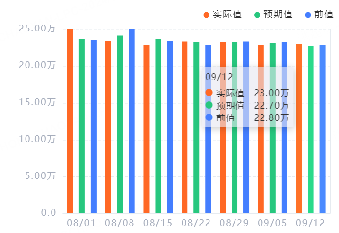 北京时间周四晚20:30,美国劳工部将公布当周失业金申请人数,目前市场预期值与前值持平,为23万人: