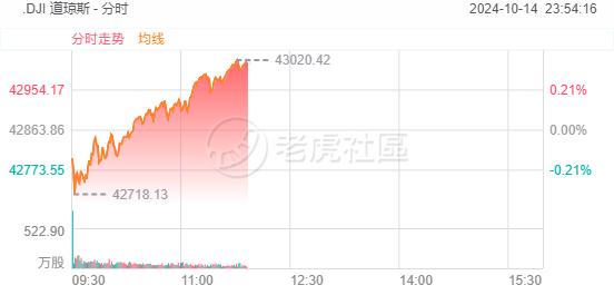 周一,美股道琼斯工业平均指数盘中突破43000点关口,创历史新高。截至发稿报43015.13点,涨0.35%。同时,纳指涨0.75%,标普500指数涨0.65%。