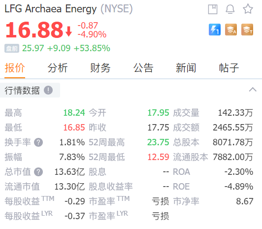 Archaea Energy盘前暴涨53%,英国石油公司同意以每股26美元的价格收购Archaea的A类和B类股票,收购总价值近41亿美元,包括约8亿美元净债务。声明指出,Archaea将成为英国石油现有生物能源业务不可或缺的一部分,该业务已在该领域确立关键地位,是英国石油的关键转型增长引擎之一,预计将进一步推动Archaea进入国际市场。双方目标在2022年底前完成收购。交易完成后,Archaea将作为英国石油的子公司运营。