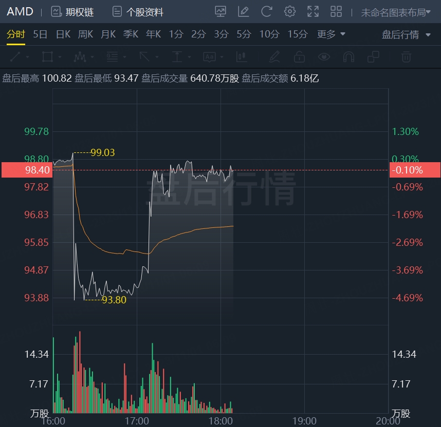 财报公布后,收涨2.4%的AMD盘后股价先跳水,盘后跌幅一度接近5%。