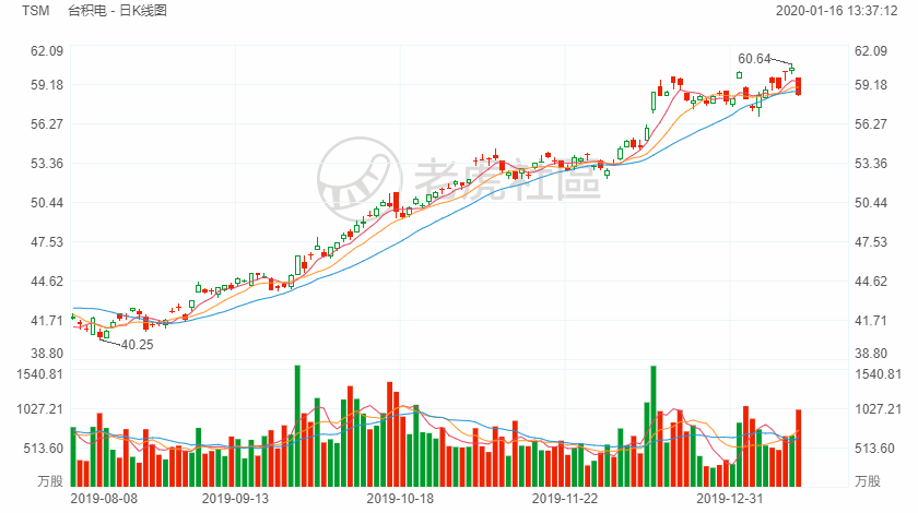 台积电昨日美股收盘,下跌3.2%,报58.39美元。