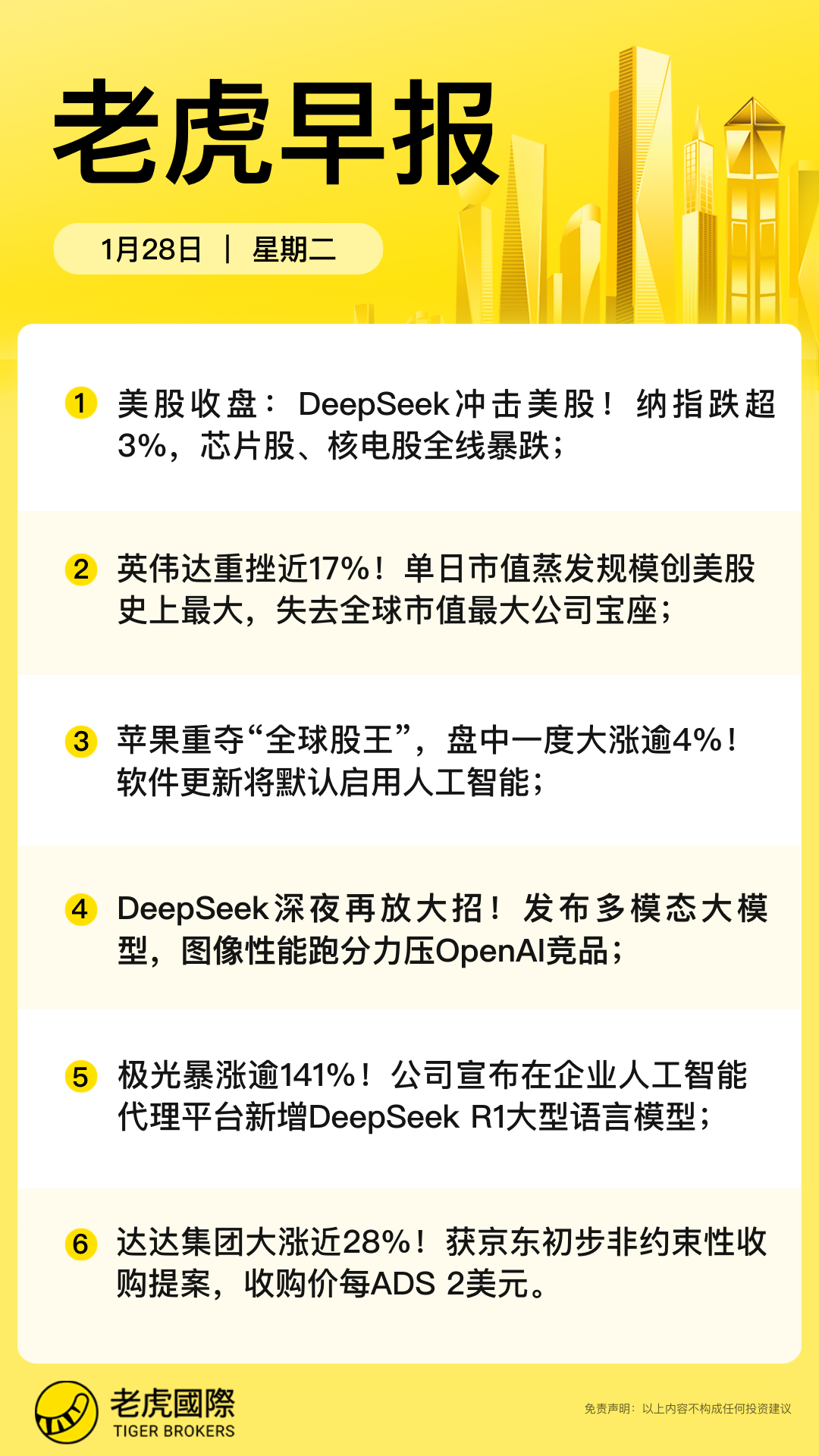 美股收盘:DeepSeek冲击美股!纳指跌超3%,芯片股、核电股全线暴跌;