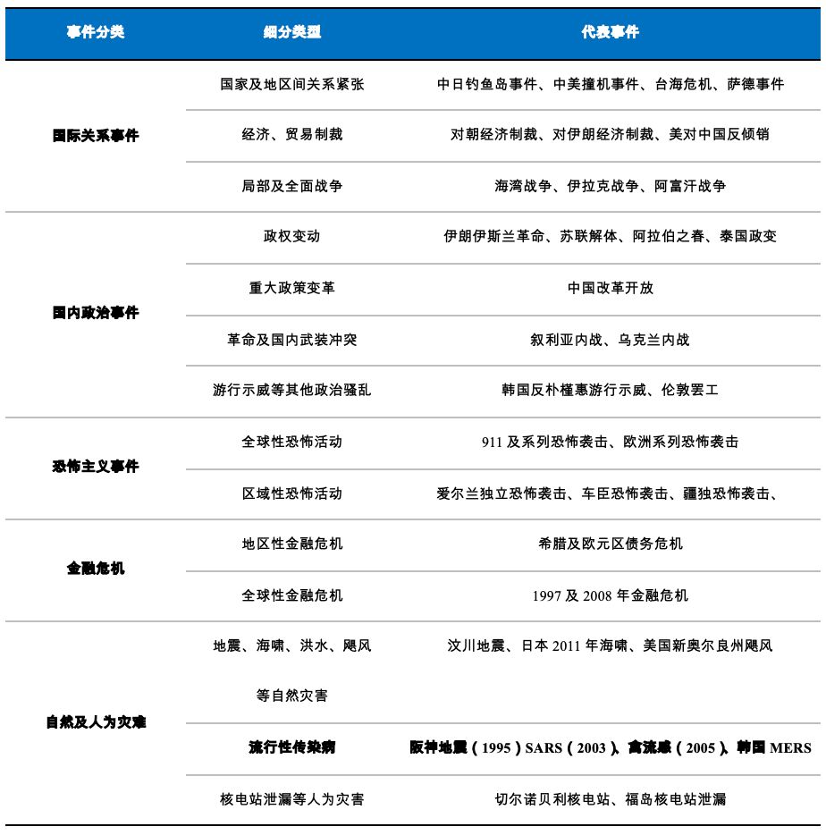 参考学术研究,危机事件根据性质可分为以下五类:国际关系事件、国内政治事件、恐怖主义袭击、金融危机、自然及人为灾难。