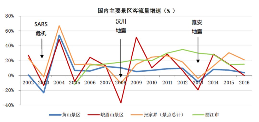 景区方面,2004年黄山、峨眉山、张家界景区客流增速达到54%、48%和67%,复苏力度较为明显。